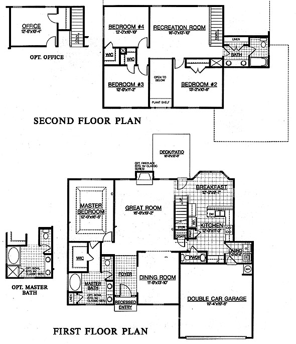 A dramatic 2 story foyer welcomes you to this home of elegance and comfort. To the right of the foyer is the dining room, which leads into the great room. The downstairs master suite features a bedroom with tray ceiling and walk-in closet and a master bath with a garden tub and optional double vanity. The kitchen offers a breakfast bar for those quick meals, a pantry and breakfast area with bay window. The staircase is conveniently located between the great room and kitchen and leads to the recreation room and additional bedrooms upstairs.