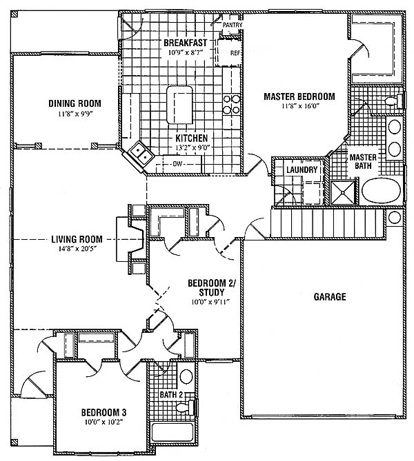 This unique single story home is designed with flexibility in mind. The split bedroom plan features a room that can be utilized as a bedroom, office, or a nursery depending on selected options. A large living room with a cathedral ceiling and a dramatic Palladian window adjoins the formal dining room with decorative columns. The kitchen is highlighted be a corner sink with an arched overlook, a work island with a breakfast bar, and a morning room. The master suite features a garden bath and a walk-in closet. The bonus room or fourth bedroom is located above the master bedroom and is available with or without the homes third bath.