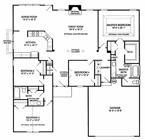 This home has a spacious great room in the back that is the perfect location to entertain visitors. The kitchen with pass-thru window and pantry, opens into the dining room. The master suite has an optional tray ceiling and includes a walk-in closet and private bath. Three more bedrooms share a large bath.