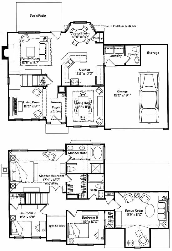 A gracious two-story foyer welcomes your guests. To the left is the living room and to the right is the dining room. The kitchen is open to the family room and casual dining area. Upstairs, double doors lead you into your master suite, featuring a bedroom with tray ceiling, a master bath with a garden tub and separate shower, and a nicely sized walk-in closet. Bonus room upstairs could be used as a recreation room, or a guest suite.