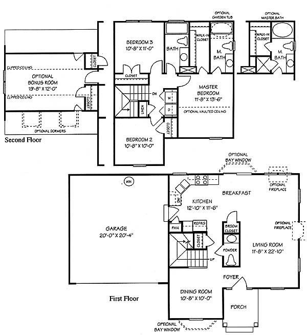 Completely open floor plan. Large living room with an optional fireplace. Kitchen with plenty of working room. Formal dining room. The second floor includes a large master bedroom with a large walk-in closet and optional vaulted ceiling.