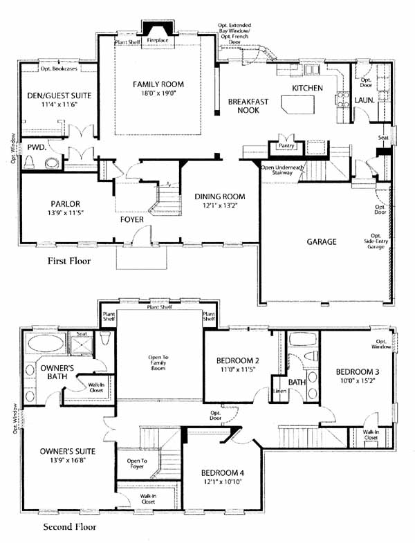 The foyer flanked by the dining room and parlor takes you directly into the family room with fireplace. Just to your left is the den and powder room and to the right of the family room is the fabulous kitchen with island, pantry and breakfast nook. On the second floor you'll find the 2nd, 3rd and 4th bedrooms, hall bath and the impressive owner's suite and bath with tub, shower and walk-in closet.