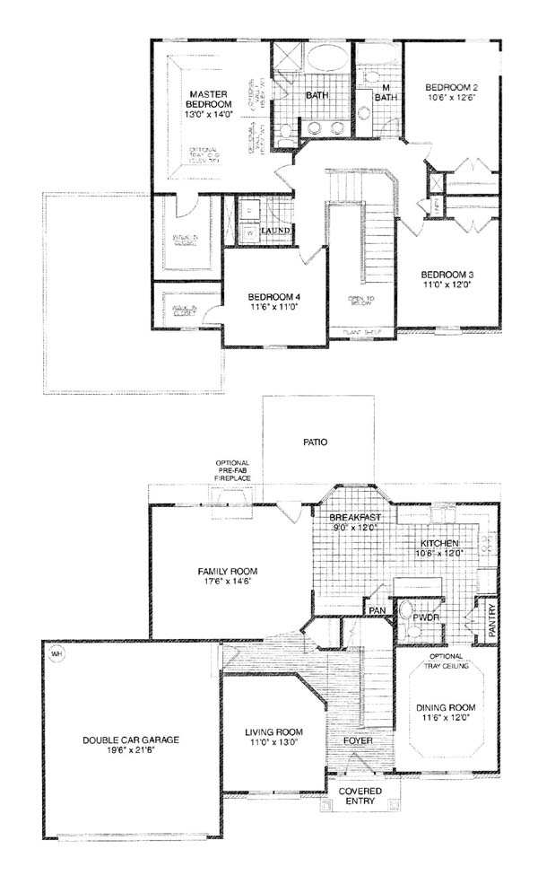 The foyer flanked by the living and dining room leads you into the large family room with optional pre-fab fireplace. Next is the tiled kitchen with wrap around counter and breakfast nook. On the second floor you have the 2nd, 3rd and 4th bedrooms, hall bath and the massive master bedroom and bath with walk-in closet and dual vanities.