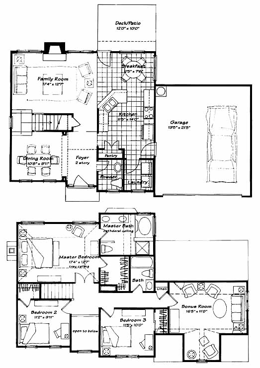 Informal elegance defines this home. A gracious two-story foyer welcomes guests to the formal dining room and leads them to the sunlit family room. The kitchen has a large breakfast bar and sunny eating nook. It also features a pantry large enough to store more than just food. Follow the stairs from the family room to the private upstairs area where you will find your master suite featuring a bedroom with trey ceiling, abundant windows and a walk-in closet. Two other bedrooms and a bonus room for recreation, play, study or to use as an additional bedroom.