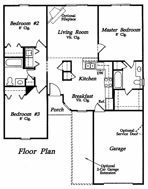 Located convenient to shopping, recreation, excellent schools and major highways, the Bryson features a large living room with vaulted ceiling, vaulted kitchen with adjoining breakfast area, master bedroom with large walk-in closet, and 2 more bedrooms with full bath and laundry area.
