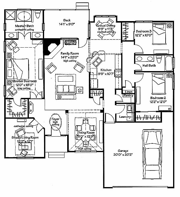 The Barrington features a formal dining room and living room with cathedral ceiling, spacious master bedroom with trey ceiling and master bath with cathedral ceiling, family room, kitchen with breakfast bar and dining area and 2 additional bedrooms with a full bath.