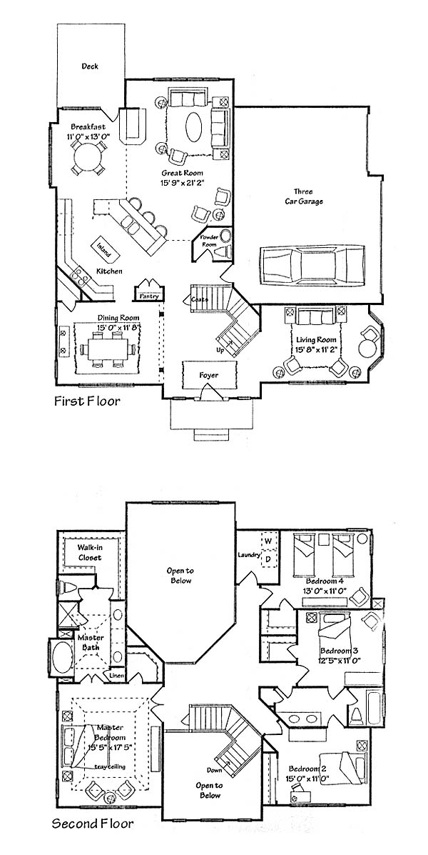 Home is waiting for you at this friendly neighborhood appointed with amenities that invite neighbors to become friends. Sidewalks lead to the village green and the open greenways so all residents can enjoy quiet leisurely strolls and conversations. And for a little faster pace, a neighborhood swim club and activity fields offer hours of fun and play within your own neighborhood. Just as the gardens of yesterday welcomed the farming families, this neighborhood will welcome you home. Large executive style home with four bedrooms and two and a half baths. Large formal dining and family rooms. Shown with two car garage with optional bonus room over garage. Standard plan has three car garage.