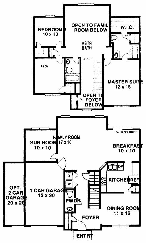 This two-story, three bedroom, 2 1/2 bath floor plan has 1 or two car garage option. Home features large family room and sunroom. Gourmet kitchen adjoins breakfast area and separate formal dining room. Master suite has large walk-in closet.