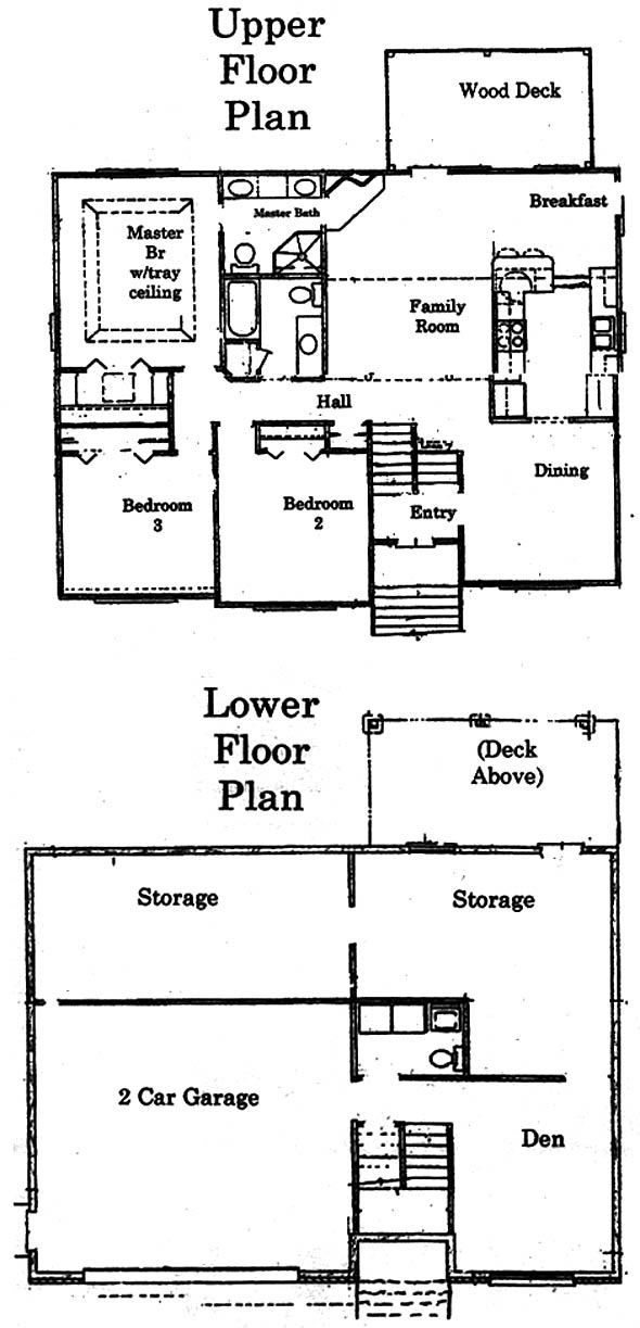 This split level home features a finished den and storage space downstairs, a level lot, rear deck, fireplace, vaulted ceilings, tray ceiling in master bedroom, great room and breakfast nook.