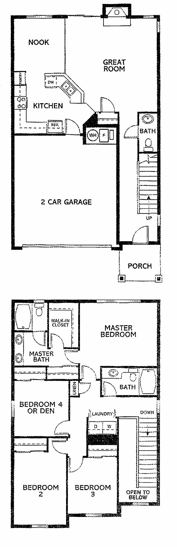 As you enter the home you'll walk down the hallway past the powder room and come to the large great room with fireplace. Open to the great room is the kitchen with pantry, wrap around counter and breakfast nook. Upstairs you have the 2nd, 3rd and 4th bedrooms, hall bath and the master bedroom and bath with walk-in closet and dual vanities.