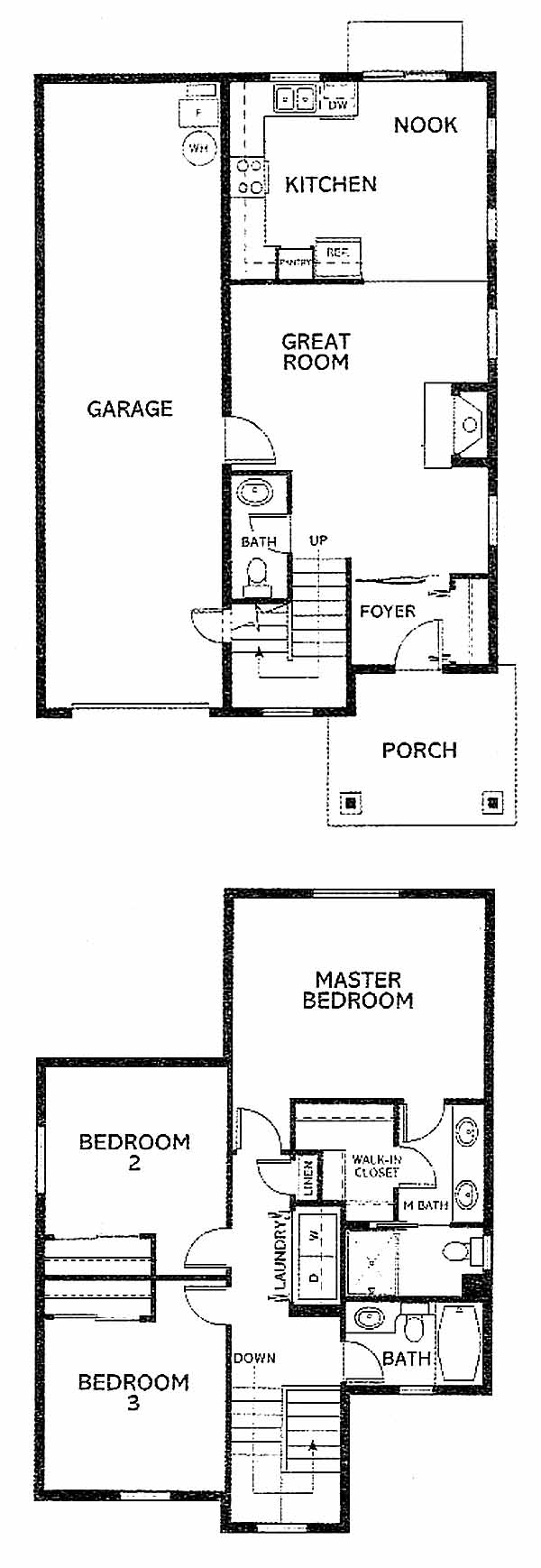 The foyer leads you directly into the great room with fireplace. Next is the kitchen with pantry, breakfast nook and wrap around counter. Upstairs you have the 2nd and 3rd bedrooms, hall bath and the master bedroom and bath with walk-in closet and dual vanities.