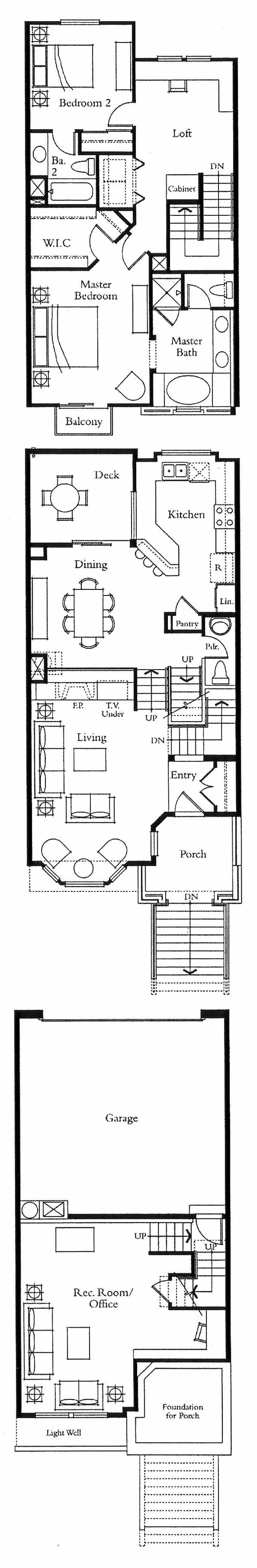 From the garage you'll enter the spacious rec. room/office. On the second floor you'll find the lovely living room, powder room, kitchen with pantry and dining room which access's the deck. On the 3rd floor you have the 2nd bedroom and bath, large loft area and massive master bedroom and bath with walk-in closet and dual vanities.
