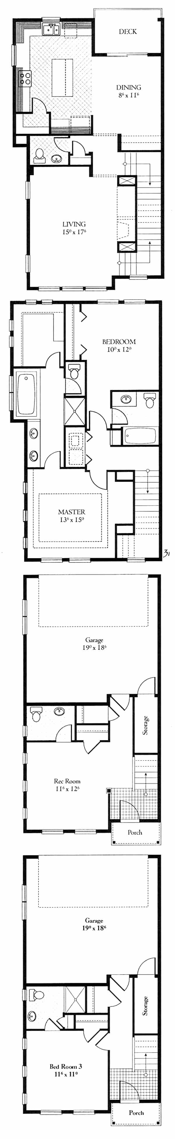 As you enter the home you'll immediately be greeted by the rec. room with bathroom. As you walk up the stairs you'll enter the 2nd floor into the living room. As you walk past the powder room you'll come to the dining room which access's the deck. Open to the dining room is the kitchen with island, wrap around counter and pantry. On the 3rd floor you'll find the 2nd bedroom with bath and the master bedroom and bath with dual vanities and a walk-in closet.