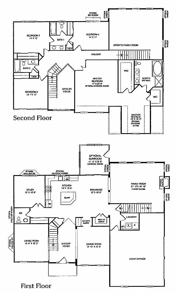 The 2-story flanked by the lovely living and dining room takes you into the family room with optional fireplace. From the family room you can access the large kitchen with island,pantry and breakfast nook. Upstairs you'll find the 2nd, 3rd and 4th bedrooms, hall bath and the massive owner's bedroom with retreat, his and her walk-in closets and master bath with dual vanities, tub and shower.