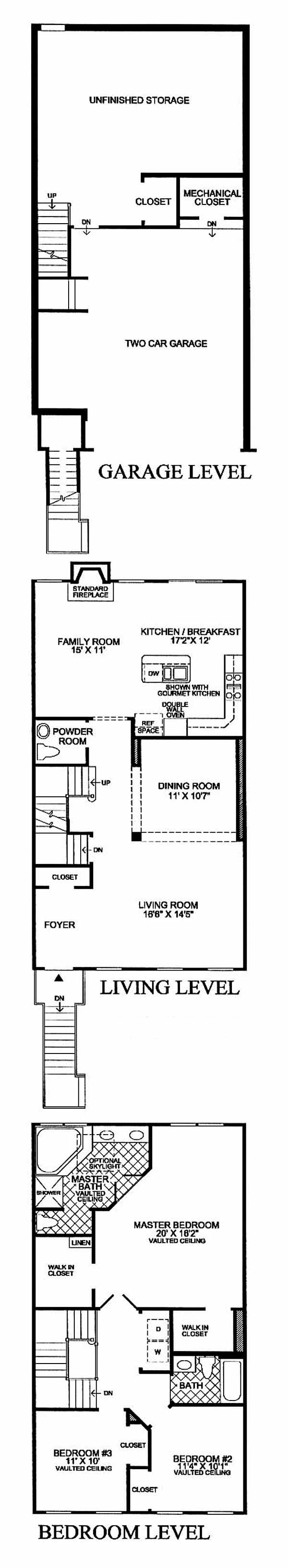 This two-car garage floor plan features an elegant foyer which opens to a spacious living room. Adjacent to the living room is the formal dining room. A well appointed kitchen with island counter top opens to the breakfast area. The master bedroom suite includes two large walk-in closets and master bath with soaking tub and dual vanities.