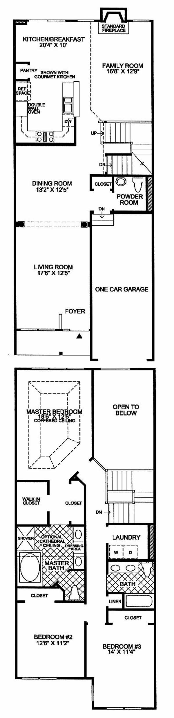 This spacious townhome presents an elegant living room and dining room separated by distinctive columns. The gracious master bedroom offers a hallway overlook to the breathtaking two-story family room with gas fireplace.