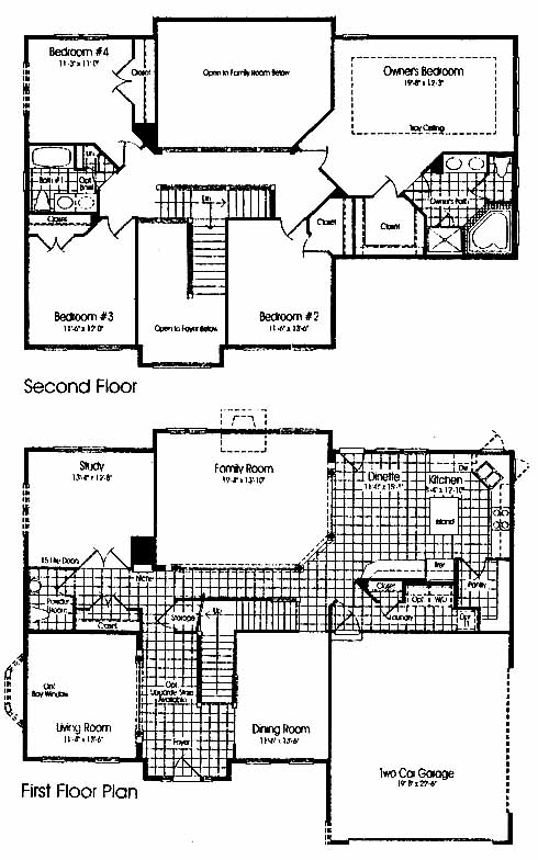 This home has formal living and dining rooms on either side of the foyer entrance. The study toward the back makes a nice home office or library. Entertain guests comfortably in the family room with optional fireplace available. The dinette leads to the kitchen with walk-in pantry and island workspace. The second-floor owner's bedroom includes a walk-in closet and master bath with double vanity, soaking tub and separate shower. Three more bedrooms share a bath. Views of the family room and foyer can be seen below.