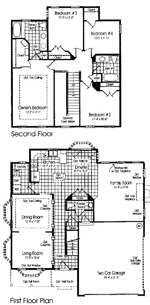 This home includes formal living and dining rooms to one side of the foyer entrance. The large open kitchen has a pantry and optional island workspace while overlooking the dinette area. The family room with optional fireplace is a nice spot to entertain guests. The second-floor owner's bedroom includes a walk-in closet and master bath with double vanity. Three more bedrooms share a bath.