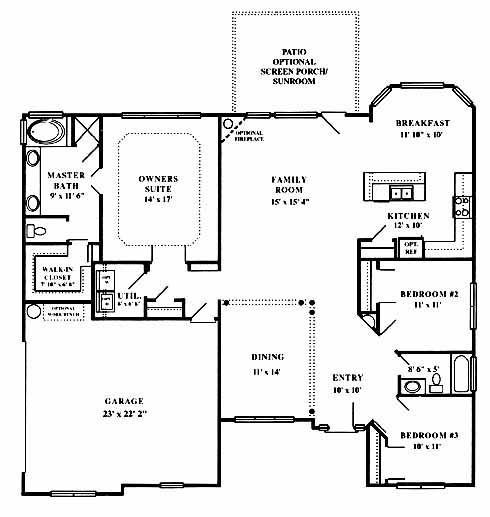 As you enter the home you'll pass the dining room and the 2nd and 3rd bedrooms with bath just before you come to the large family room with optional fireplace. From here you can access the kitchen with island and breakfast area and the gorgeous owner's suite and bath with dual vanities and a walk-in closet.