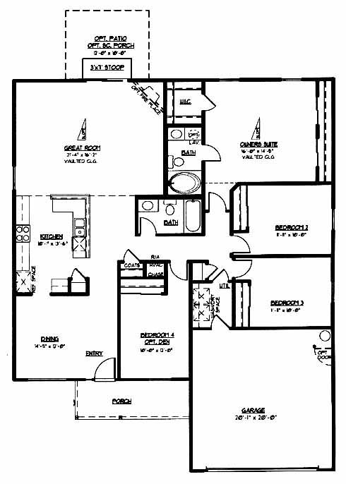The lovely dining room greets you as you enter the home. Next you'll come to the kitchen with pantry. From here you can access the great room with optional fireplace, 2nd, 3rd and 4th bedrooms, hall bath and the owner's suite and bath with a walk-in closet.