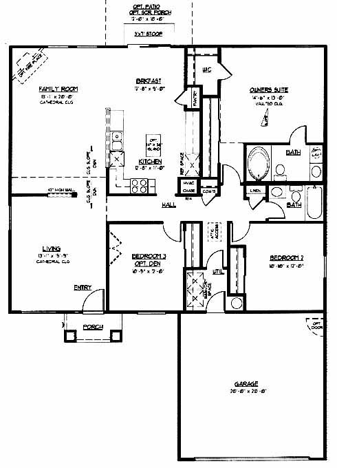 The large living room greets you as you enter the home. Down the hall to your right you'll find the 2nd and 3rd bedrooms, hall bath and the owner's suite and bath with a walk-in closet. Also accessible from the living room is the family room with optional fireplace and the kitchen with breakfast area.