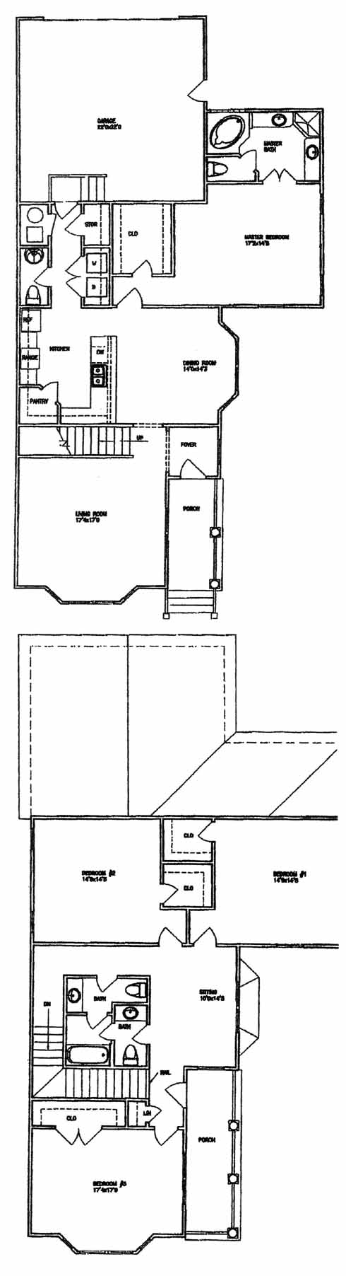 This two-story home has a large living room at the front with bay window that is perfect for entertaining guests. The kitchen has a walk-in pantry and views of the dining room bay window. The first-floor master suite includes private bath with soaking tub and a walk-in closet as well. The second floor has three more bedrooms, each with walk-in closets. A centrally located bath has two water closets. The sitting area leads to a door with access to the second-floor porch.