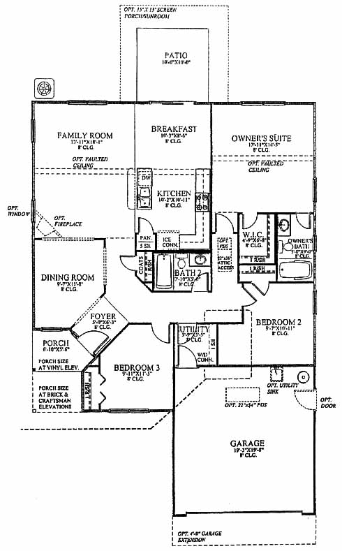 This home has a dining room to one side of the foyer entrance. Continuing into the home is the family room with optional vaulted ceiling and fireplace. The kitchen has a pantry and opens into the breakfast area with sliding doors to the patio. The owner's suite has a walk-in closet and private bath. Two bedrooms share bath and have close access to the utility room.