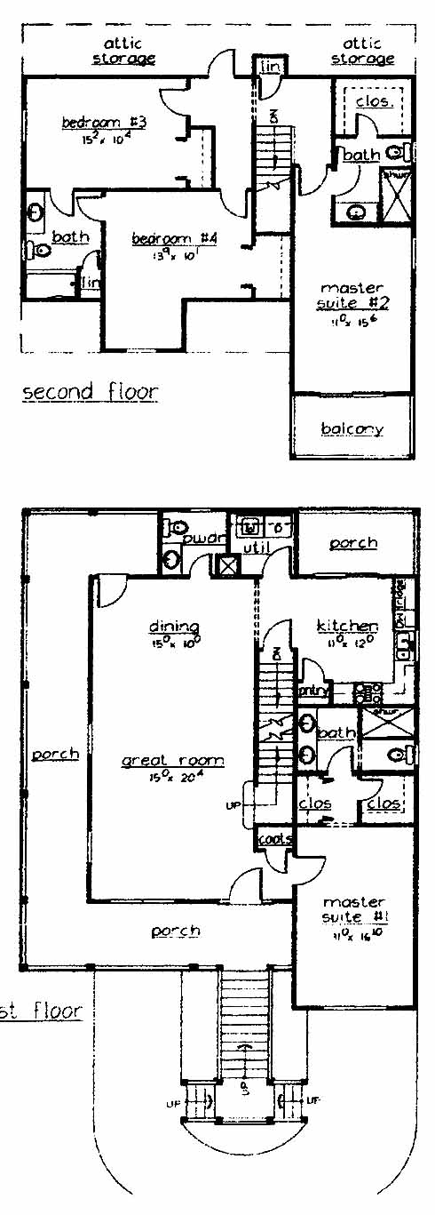 This two story raised beach home features large wrap around porches. Enter the large great room with 9 foot ceilings which flows into the dining room. The spacious kitchen off of the dining room has another porch off the back. The large first floor master suite has his and her closets entering the bath with double vanity. The second floor features a second master suite with balcony off the front of the house and a large bath and walk in closet. Two more spacious bedrooms and shared bath top off this exciting beach home. Attic space off the second floor allows for ample storage.