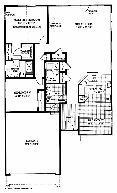 This home features a large great room that is perfect for entertaining guests. The kitchen has a pantry, counter top bar and breakfast area. The master suite includes a walk-in closet and private bath with double vanity. A second bedroom is located toward the front of the home.