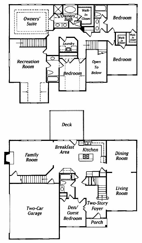 This home has a den that makes a great office to one side of the two-story foyer. To the other side is the living room that leads to the dining room. The kitchen includes an island workspace with range, a pantry and it opens into the breakfast area. The family room has a fireplace and three large windows that let in plenty of natural light. The deck is accessible from the breakfast area. The second-floor master suite includes a private bath with double vanity and a walk-in closet. Three more bedrooms and two baths are also on the second level. The recreation room will entertain young and old.