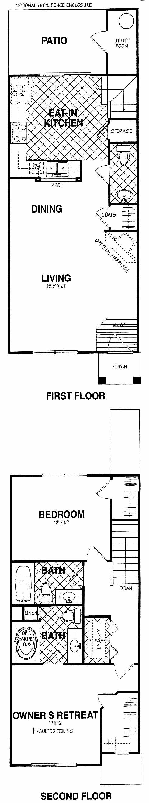 Front door opens to huge great room with optional fireplace and coat closet. Main floor also includes half bath and eat in sixteen with sliding door to patio. Second floor boasts 2 large bedrooms with vaulted ceiling in master and 2 full baths.