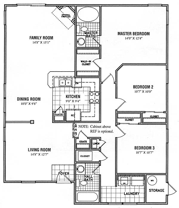 A cozy front porch greets you upon your arrival at this sensational home. A formal living room complements a generous private gathering area at the rear of the home. This area includes the semiformal dining room, the family room and the kitchen. The large master suite includes a walk-in closet and a garden tub. The owner can choose vaulted ceilings to increase the open feel of this home.
