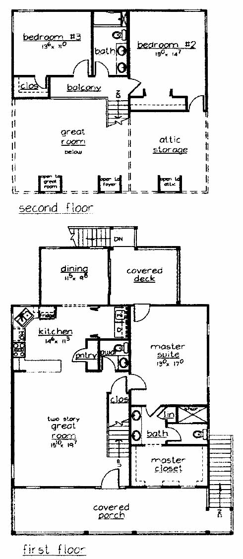This two story raised beach home features a large open two story great room. Enter the spacious kitchen from the great room with dining room and covered deck off the back of the house. The large first floor master suite with a huge master closet also opens onto the deck. The second floor features two more spacious bedrooms and bath with a balcony overlooking the great room. A large attic allows for ample storage.