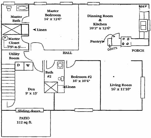 Enter this one story town home from the porch into a living room off the foyer with spacious cathedral ceilings and an oversized arched front window. The kitchen and dining room is one large room with ample work space in the kitchen opening into a large eating area. The first floor master suite has a master bath with tub or shower option and walk in closet. An additional large bedroom and den which may be a third bedroom complete the ensemble. Sliding doors off the den/3rd bedroom open onto the patio. A finished upstairs bonus room is optional.