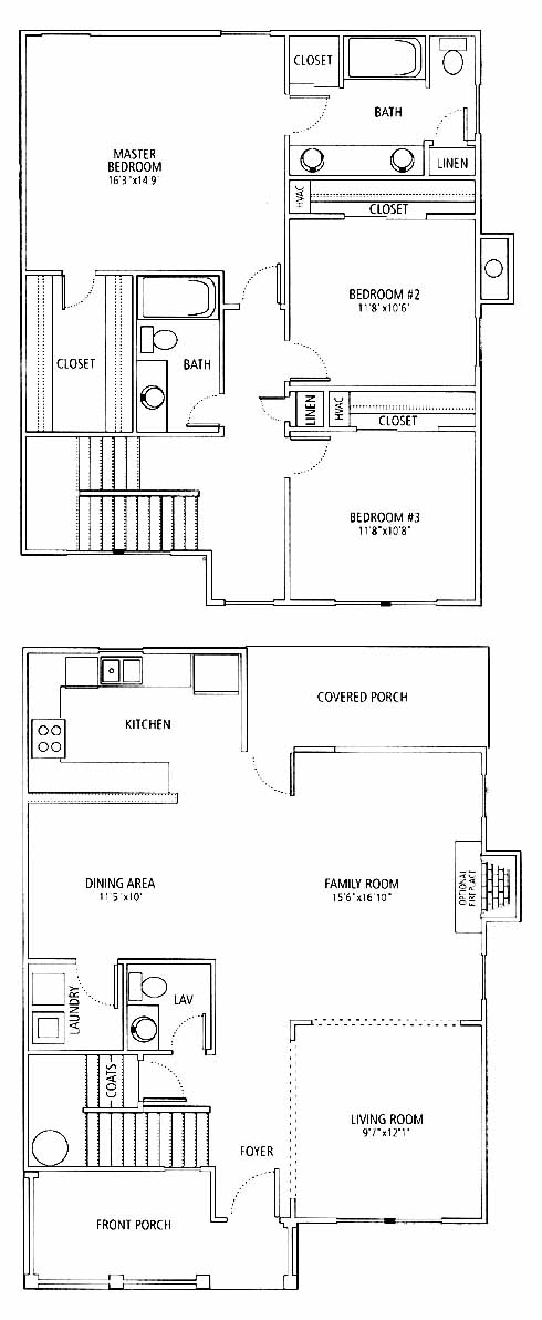 This two-story home includes a formal living room to one side of the foyer entrance. The large family room has access to the covered back porch and has an optional fireplace available. The dining area overlooks the family room. The kitchen in the back has ample counterspace for preparing meals. The second-floor master bedroom includes a large walk-in closet and private bath with double vanity. Two more bedrooms share a bath.