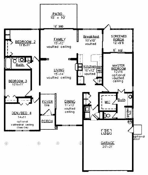This home has living and dining rooms that surround the foyer entrance. At the back is the family room that includes access to the patio outside. The kitchen includes a pantry and opens into the breakfast area with entry to the screened porch. The master suite has a walk-in closet and private bath with garden tub. Two more bedrooms share a bath between them. The den at the front makes a nice home office. Vaulted ceilings throughout most of the home.