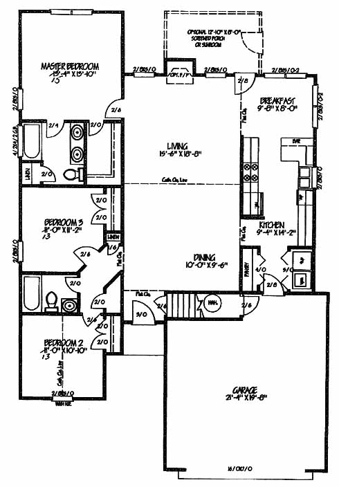 This home has a combined dining and living area in the center of the home that creates a spacious feel to the design. The kitchen includes a large pantry, ample workspace, a bar area and opens into the breakfast room. The master suite has a walk-in closet and private bath with double vanity and linen closet. Two more bedrooms share a bath between them. A second-floor bonus room makes a nice home office or fitness room.