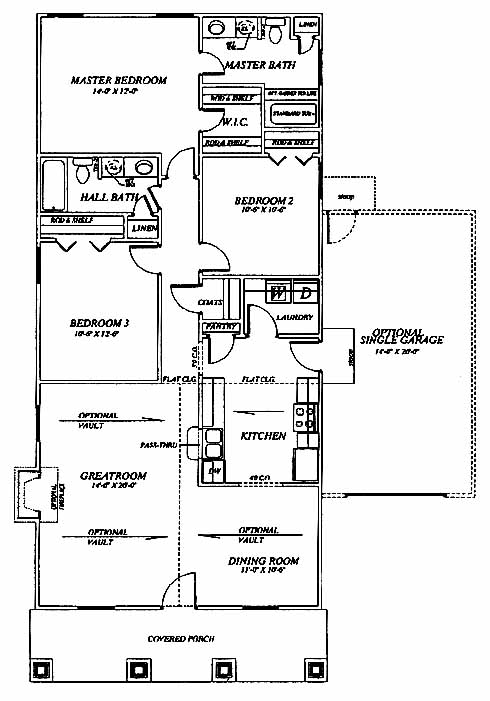 Large dining room at the front leads to the kitchen with pantry and pass-thru. The great room with optional fireplace is a nice spot to relax on weekends. Two bedrooms share a bath while the master has a private bath and walk-in closet.