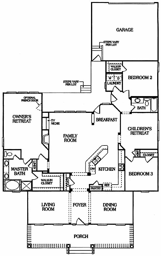 Want the charm of an old fashioned Victorian with the openness of a new home? The one level home offers 3 bedrooms plus a children's retreat or the option of a 4th bedroom. Formal areas, large family room and optional bonus room. Master suite opens onto the veranda.