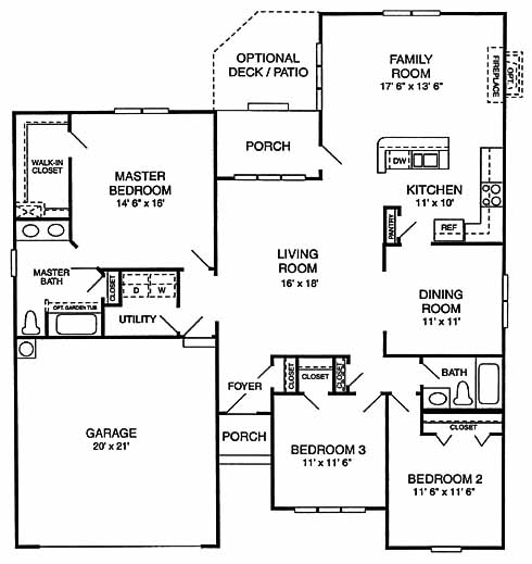The centrally located living room with views of the back porch has access to all areas of home. The kitchen has a pantry, counter top bar and access to the dining room. The family room in the back is a nice area to entertain guests. The master suite includes a walk-in closet and private bath with double vanity. Two more bedrooms at the front of the home share a bath.