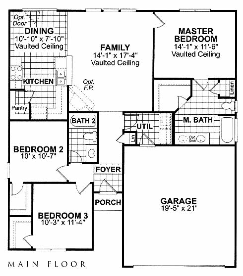 This home has two bedrooms with walk-in closets to one side of the foyer entrance. The family room is a nice area to relax on the weekend and leads to the dining area. The kitchen has a walk-in pantry and ample counterspace. The master suite includes a walk-in closet, linen closet and private bath. The optional bonus room makes a nice fitness area.