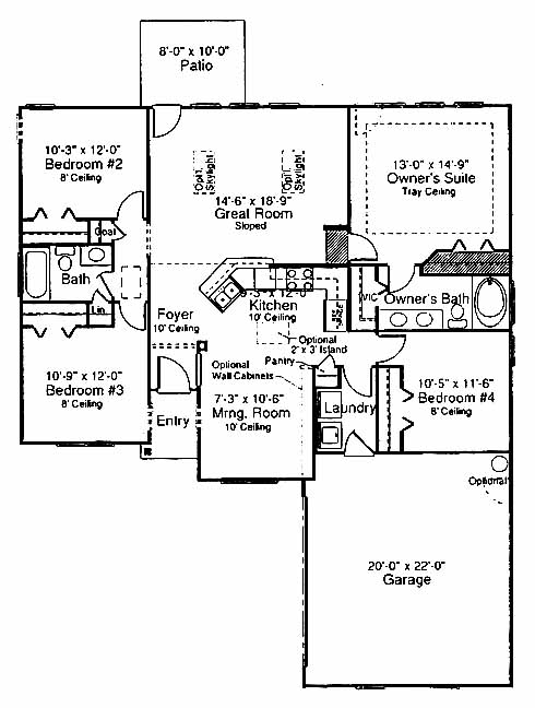 This ranch home has a large kitchen with pantry and morning room to one side of the foyer entrance. The great room is the perfect spot to entertain guests and includes access to the patio. The owner's suite has a walk-in closet and master bath with double vanity. Three more bedrooms share a bath.