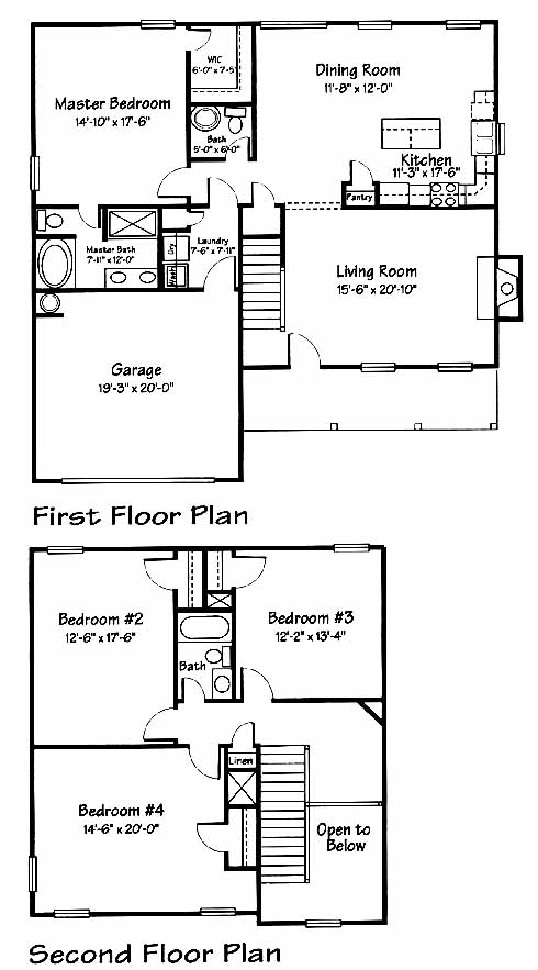 This home features a spacious living room with optional fireplace at the entrance. The dining area with patio access leads to the kitchen that includes a pantry and island workspace. The first-floor master bedroom has a walk-in closet and master bath with double vanity, tub and separate shower. The second floor has three more bedrooms and a shared bath.