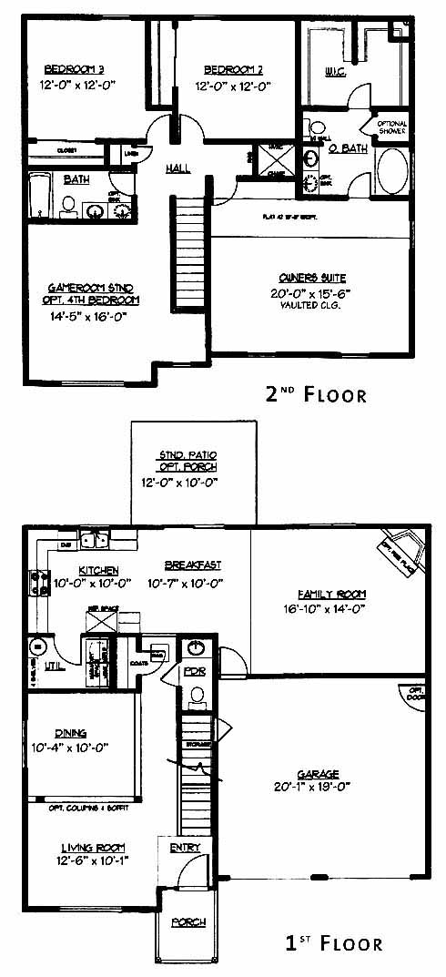 This home has a living room and formal dining room to one side of the foyer entrance. The kitchen has ample counterspace, access to the utility room and it opens into the breakfast room with patio access. The family room with optional fireplace is a nice spot to entertain guests. The second-floor owner's suite includes a large wardrobe closet and an owner's bath with double vanity and soaking tub. Two more bedrooms share a bath. The gameroom will keep the kids entertained for hours on end.