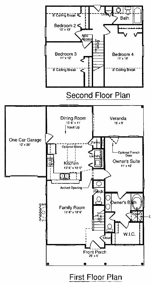 This home includes a large family room with fireplace available. The kitchen nearby has a pantry and ample counterspace for preparing meals while opening into the dining room. The first-floor owner's suite includes a walk-in closet and owner's bath with double vanity, tub and optional shower available. The second floor has three more bedrooms and a shared bath.