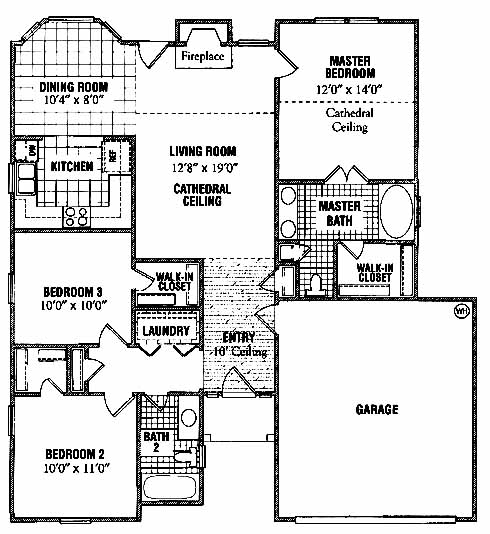 This home has a living room with fireplace and cathedral ceiling that is perfect for entertaining guests. The dining room with bay window leads to the kitchen with ample counterspace for preparing meals. The master bedroom includes a walk-in closet and master bath with double vanity and soaking tub. Two bedrooms and a shared bath are to one side of the entry.