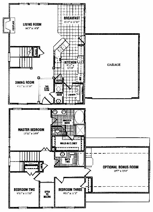 This home has a dining room to one side of the dining room. The living room in the back with fireplace is a nice spot to entertain guests. The breakfast room leads to the kitchen with pantry and laundry access. The second-floor master bedroom includes a walk-in closet and master bath with double vanity, tub and separate shower. Two more bedrooms share a bath. The optional bonus room above the garage makes a nice fitness area of home office.