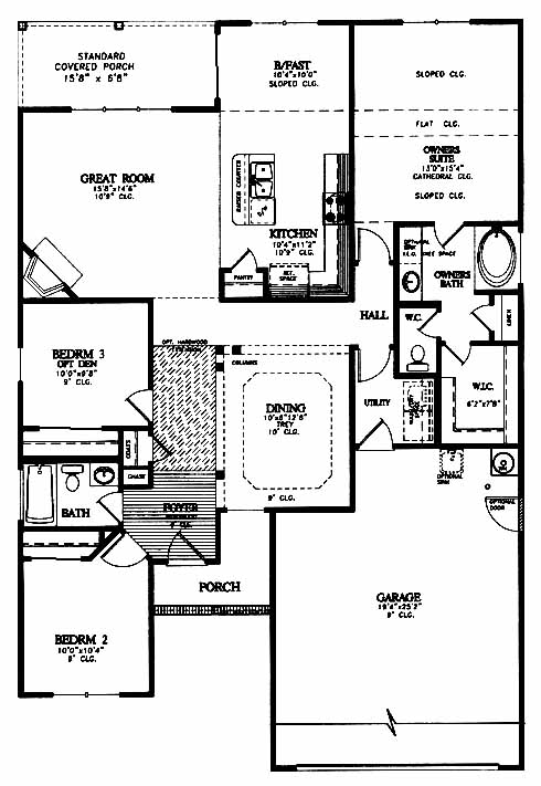This home has a formal dining room to one side of the foyer entrance. Entertain guests by the fireplace in the spacious great room with porch access. The open kitchen includes a pantry and island workspace with double sink while overlooking the breakfast room. The owner's suite has a walk-in closet and owner's bath with soaking tub. Two more bedrooms on the opposite side of the home share a bath.