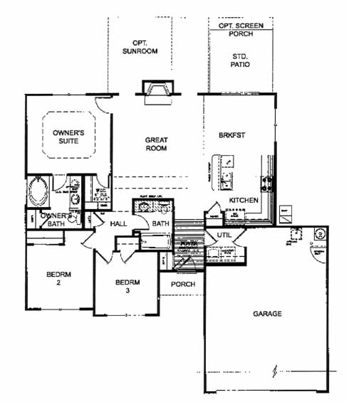 This home features a spacious great room with fireplace and cathedral ceiling where you can enjoy entertaining friends. The breakfast room has access to the patio while leading to the kitchen with pantry and raised bar area. The owner's suite includes a walk-in closet and master bath with soaking tub.