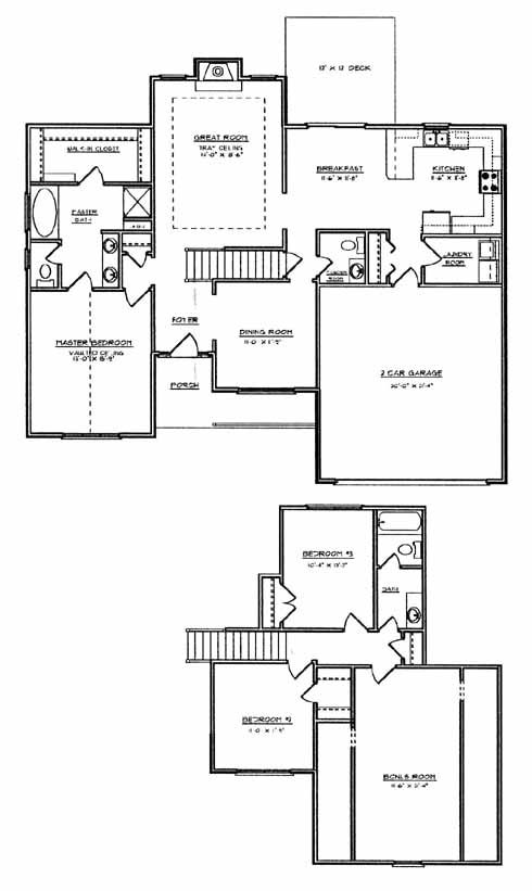 This home has a formal dining room to one side of the foyer entrance. The great room in the back has a tray ceiling and fireplace where you can entertain guests. The breakfast room includes access to the deck outside. The kitchen has ample counterspace for preparing meals. The first-floor master bedroom includes a walk-in closet and master bath with double vanity, tub and separate shower. The second floor has two more bedrooms, a shared bath and a bonus room that makes a nice home office or fitness area.
